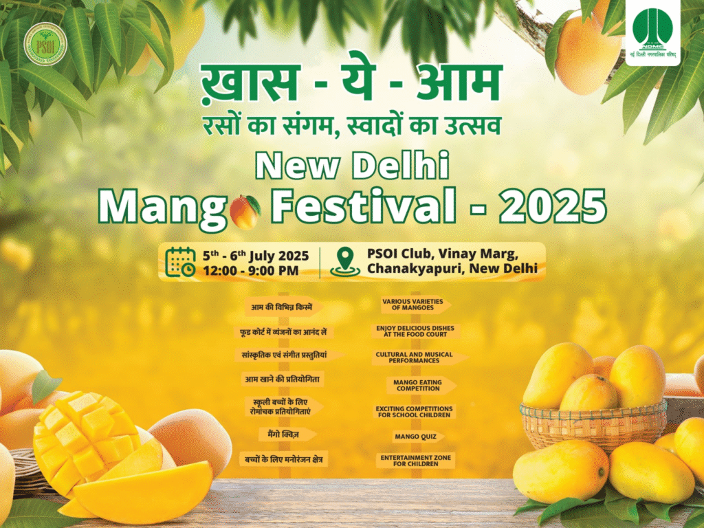नई दिल्ली नगरपालिका परिषद (एनडीएमसी) विनय मार्ग पर चाणक्यपुरी, नई दिल्ली स्थित पालिका सेवा अधिकारी संस्थान (पीएसओआई) में दो दिवसीय (5 और 6 जुलाई) आम महोत्सव का आयोजन करने जा रही है। यह महोत्सव प्रतिदिन दोपहर 12 बजे से रात 9 बजे तक चलेगा। इस कार्यक्रम का उद्घाटन 5 जुलाई, 2025 को दोपहर 12 बजे एक रंगारंग कार्यक्रम के साथ होगा।